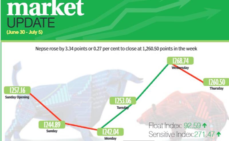 As a result, the Nepal Stock Exchange (Nepse) index recorded only a marginal gain of 0.27 per cent or 3.34 points in review week.