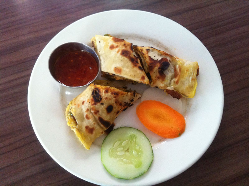We ordered four items, starting with Chicken Kathi Roll as recommended by the waiter, along with Chicken Szechuan, Chicken Wings and Chicken Momos. The kathi roll, unlike other kathi rolls I’ve had in other places, had a lot of gravy in it. While this surprised me, it did a good enough job to satisfy my taste buds.