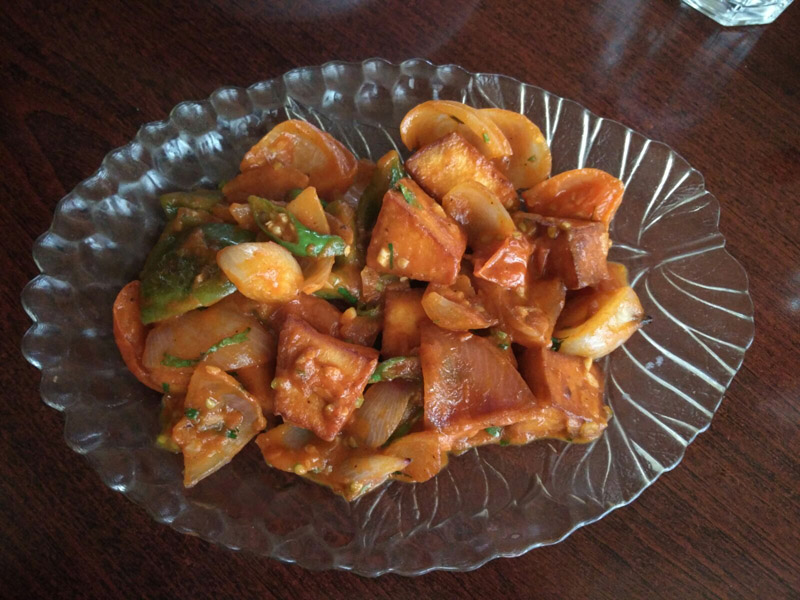As most restaurants take a lot of time in preparing food, we ordered our snacks along with the soup. Our first order was Paneer Chilli, and Tagliatelle Panna e Funghi — flat pasta sheets with mushroom and fresh cream.