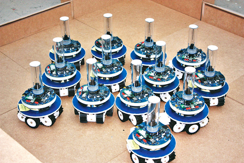 ‘Swarm robotics’, beyond being one of the scariest terms outside of a Terminator film, is the name roboticists give to robots that can coordinate behaviour between multiple bodies, acting as a group.
