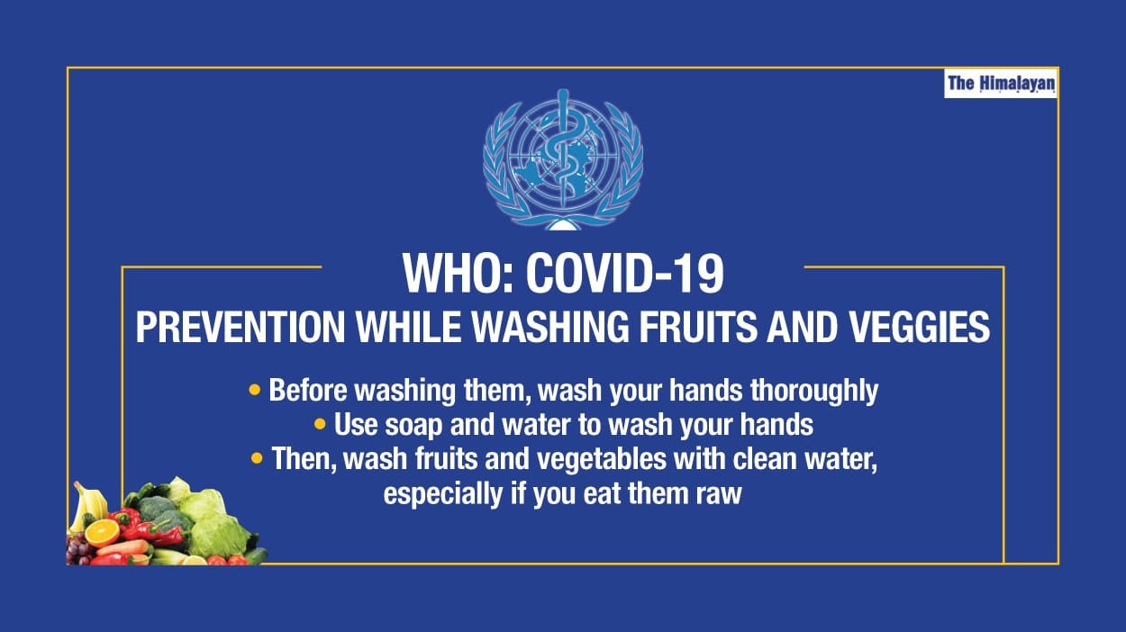 Precautions while washing fruits and vegetables to prevent COVID-19: WHO Precautions while washing fruits and vegetables to prevent COVID-19: WHO Kathmandu, May 27 As the number of COVID-19 cases mount in Nepal, these precautions are critical The World Health Organization (WHO) has these recommendations on... Kathmandu, May 27 As the number of COVID-19 cases mount in Nepal, these precautions are critical... Environment 27 May, 2020