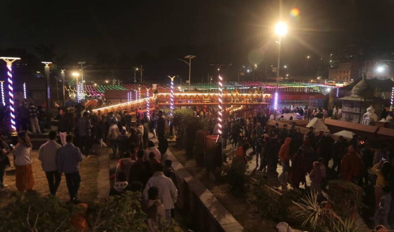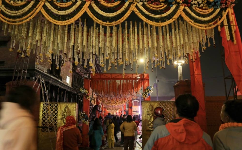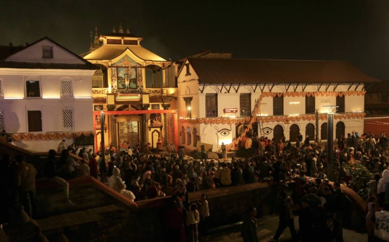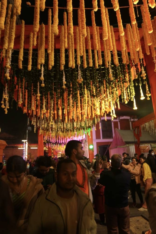 Glimpses of the Pashupatinath Temple premises on the eve of the Maha Shivaratri festival in Kathmandu on Saturday.