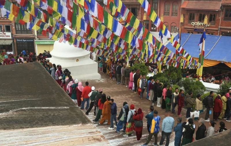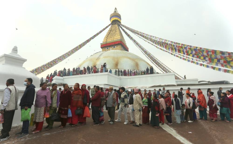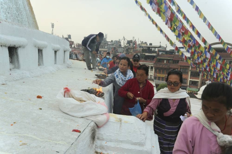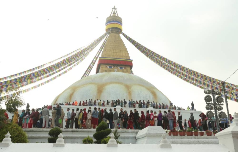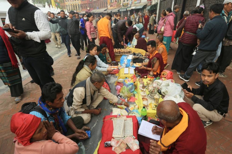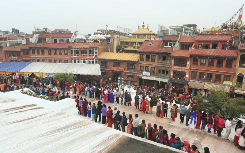 Devotees from the Tamang Buddhist community gather at Boudhanath Stupa on Wednesday, offering prayers during the Temal Jatra. Celebrated in the Temal region of Kavrepalanchok, this important historical and religious festival reflects Buddhist traditions, local Tamang culture, and strong community identity, with rituals, chanting, and ceremonies performed in monasteries.