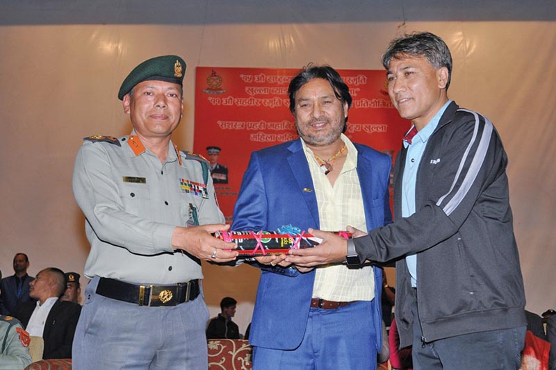 AIG Ram Sharan Paudel inaugurated the badminton tournament along with 11th Sahabir Memorial Open Lawn Tennis Tournament and APF IG sixth National Women’s Open Volleyball Tournament by handing over kits to the umpires of the respective events.