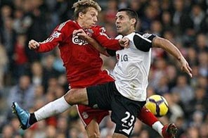 Not long afterwards substitute Erik Nevland put Fulham back ahead with a cheeky back-heel and Liverpool found themselves down to nine men after first Philipp Degen and then captain Jamie Carragher were shown straight red cards. United States international Clint Dempsey wrapped up the scoring late on.