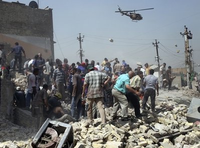 Several hours later, a parked car bomb exploded in a market, killing six civilians, police and hospital officials.