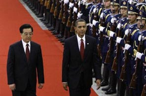 Aside from his meetings with Hu, Obama received a formal welcome. He walked past rows of soldiers in dress uniforms and dined on chicken soup with bean curd, Chinese-style beef steak and roast grouper at a state banquet. He also toured the Forbidden City, the emperors' palace for more than 400 years, and met the head of China's legislature, a former mayor of Shanghai, the commercial hub where Obama started his three-day stay in China.